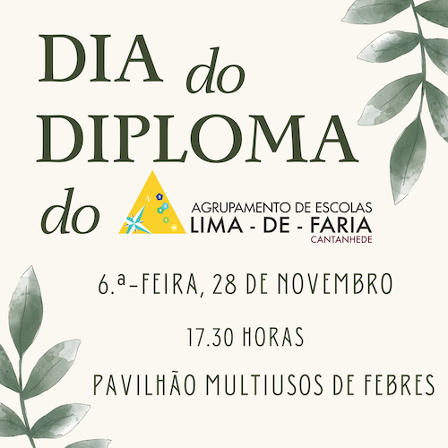 Terá lugar, no Pavilhão Multiusos de Febres, na sexta-feira, dia 28 de novembro, a cerimónia de entrega de diplomas e certificados relativos a 2023-2024 e 2024-2025, aos alunos do AELdF que, no(s) ano(s) em questão, concluíram o ensino secundário e/ou tiveram direito, ao abrigo do RI em vigor, ao reconhecimento de mérito escolar e/ou de comportamento meritório. Para mais informações, aceda a Ver Mais.