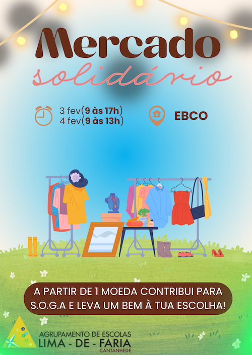 Publicado em: 2026-02-02Nos dias 3 (das 9h às 17h) e 4 de fevereiro (das 9h às 13h), na Escola Básica Carlos de Oliveira, irá realizar-se um “Mercado Solidário”. Esta iniciativa pretende dar uma nova vida à roupa (e não só) em segunda mão, promovendo a partilha, a sustentabilidade e a solidariedade. Em troca de alguns sorrisos – a moeda universal do projeto “Loja Solidária Dá&Leva” do AE Lima de Faria –, todos poderão contribuir para uma causa maior.