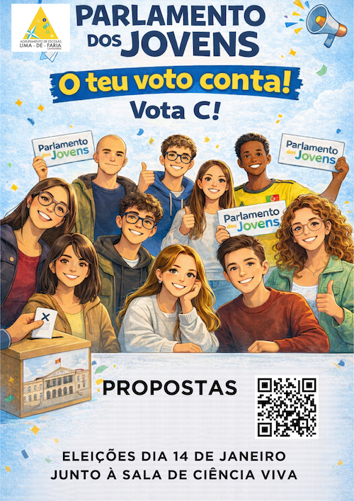 Publicado em: 2026-01-07No âmbito da eleição dos deputados à sessão escolar do Parlamento dos Jovens, apela-se à participação de todos os alunos do ensino secundário no ato eleitoral que irá decorrer no dia 14.01.2026, na Escola Secundária Lima-de-faria, Cantanhede. Divulga-se material de campanha da Lista C.