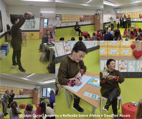 Publicado em: 2026-02-17No âmbito da Semana dos Afetos, os Serviços de Psicologia e Orientação (SPO), em colaboração com a Enfermeira Dina Inocêncio, dinamizaram no dia 10 de fevereiro, durante o período da tarde na EB1 de Febres, uma atividade especial dedicada à promoção dos valores humanos e emocionais. O encontro contou com a presença da Dr.ª Sílvia Veríssimo, convidada especial que apresentou o livro “O Sapo Óscar”, uma história encantadora que fala de amor, amizade, confiança e solidariedade, de forma acessível e significativa para as crianças.